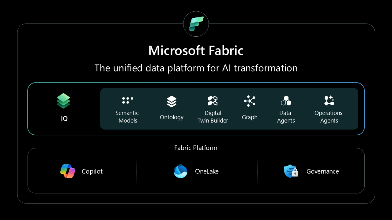 - A unified semantic graph (Fabric IQ).